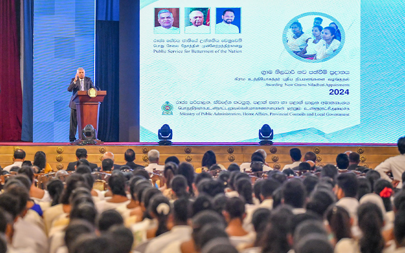 President Ranil Wickremesinghe participated symbolically in distributing the appointment letters. He briefed the new GN Officers on government initiatives like “Aswesuma” and “Urumaya”, aimed at uplifting low-income individuals, urging them to actively engage in these programs for the economic development of their communities.