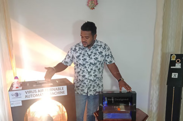 කොරෝනා වයිරසය අපේ රටට දැනෙන තරමට ව්යාප්ත වීමත් සමඟම සිය දැනුම සහ වෘත්තීය අත්දැකීම් එකතු කර වයිරසය පරාජය කළ හැකි යම් උපකරණයක් නිපදවන්න කටයුතු කළ ඔහු එහි ප්රතිඵලයක් ලෙස යම් පුද්ගලයකුගෙන් වාතයට මුසු වන බැක්ටීරියා සහ වයිරස් තප්පර කීපයේදී විනාශ කරන යන්ත්රයක් නිපදවීමට හැකියාව ලැබුණු බව ඔහු පවසයි.