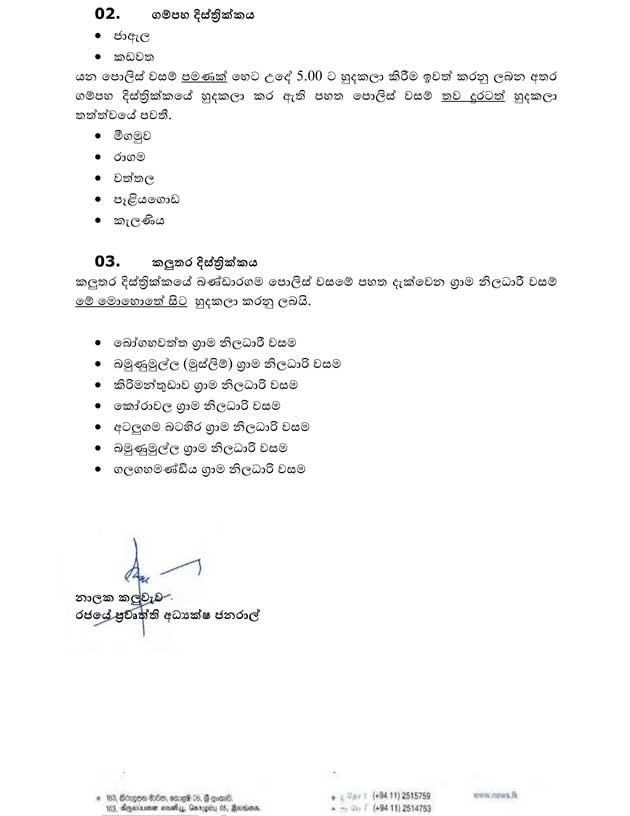හුදෙකලා කිරීම ඉවත්කරන සහ තවදුරටත් හුදෙකලා කරමින් තබන එම පොලිස් වසම් පහත නිවේදනයේ දැක්වේ.