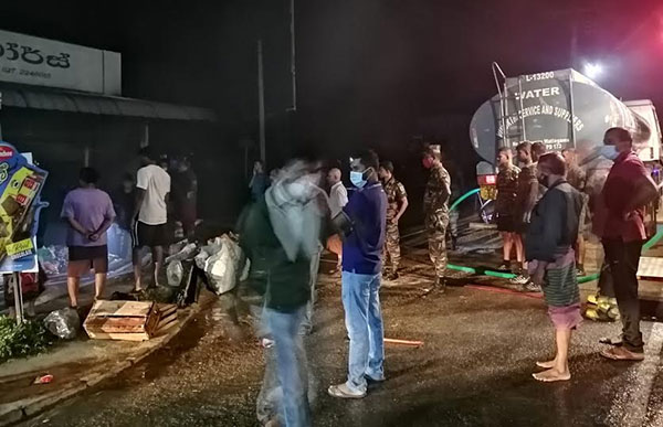 පොලිසිය පවසන අන්දමට ඒ අසලින් මාර්ගයේ ගමන් ගත් ලොරි රථයකින් ඉන්ධන පිරවුම් හලේ සේවකයෙකුට ඉදිරි පස වෙළදසැලෙන් දුමක් යන බවට පවසා ඇති අතර ඔවුන් පොලිසියට හා එම වෙළදසැලේ හිමිකරුවන් ට දැනුම් දීමෙන් පසු පොලිසිය,නාගරික ප්රජාව යුධ හමුදාව එක්ව ගින්න මැඩපැවැත්වීමට විශාල පරිශ්රමයක් ගත් හ.