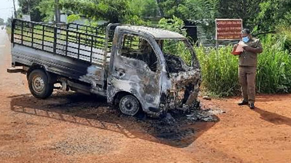 සැකකරුවන් සිවුදෙනා පැමිණ මුළුලින්ම කඩු ප්රහාරය එල්ලකර පසුව රැගෙනවිත් තිබූ පෙට්ට්රල් ඉන්දන රථයට හලා ගිනි තබා ඇතත් එම ගින්න නිවා දැමිමට නොහැකිවීම නිසා රථය ගිනිගෙන විනාශවි තිබේ.ප්රහාරය එල්ලකළ හා රථයට ගිනි තැබූවන් පොලිසිය හදුනාගෙන තිබෙනා අතර ඔවුන් අත්අඩංගුවට ගැනීමට පරික්ෂණ සිදුකරයි.