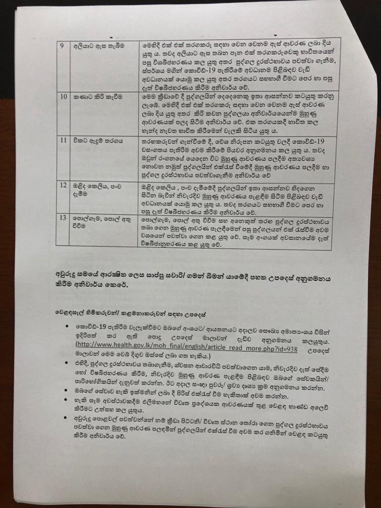 අලුත් අවුරුදු ක්රීඩා උත්සව පැවැත්වීමේදී සෞඛ්ය මාර්ගෝපදේශ මාලාවේ සඳහන් ක්රීඩා අංග පමණක් එක් කර ගන්නා ලෙස ඉල්ලා ඇති අතර නිසි සෞඛ්ය මාර්ගෝපදේශ අනුගමනය කරන ලෙස මහජනතාවට දැනුම් දී සිටියි.
