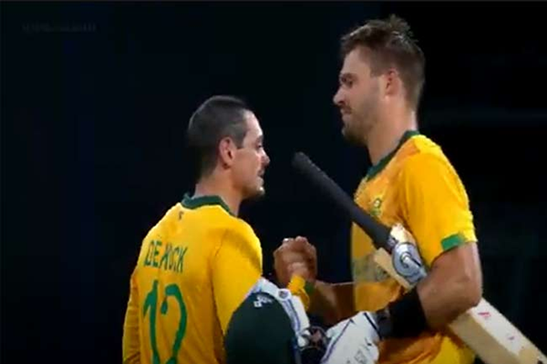 ජයග්‍රහණය සඳහා අවශ්‍ය ලකුණු 104 කඩුලු එකක් පමණක් දැවී ලබාගැනීමට දකුණු අප්‍රිකානු ක්‍රීඩකයෝ සමත් වුහ.