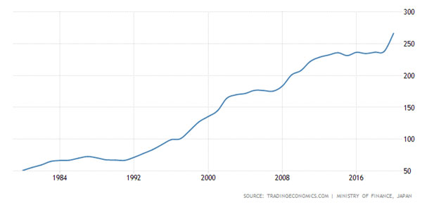 රාජ්ය ණය- ජපානය ද දේ නි යේ ප්රතිශතයක් වශයෙන්