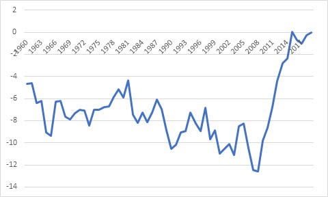 වෙළෙඳ ශේෂයේ හිඟය ග්රීසිය- ද දේ නි යේ ප්රතිශතයක් වශයෙන්