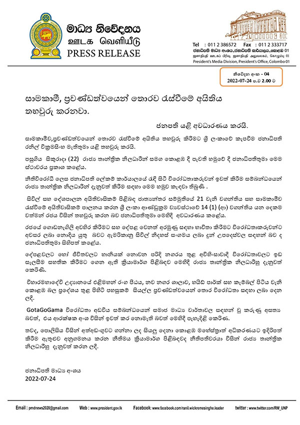 දේශීය ආවේණික මිරිදිය මත්ස්යයන්ට තර්ජනයක් බවට පත් වී තිබෙන මත්ස්ය වර්ග හතරක් තහනම් කිරීමට පරිසර අමාත්යාංශය තීරණය කර තිබේ. 1996 අංක 2 දරණ ධීවර හා ජලජ සම්පත් පනත යටතේ සකස් කරන ලද මෙම විශේෂ නියෝග ඇතුළත් ගැසට් නිවේදනය, නීති කෙටුම්පත් දෙපාර්තමේන්තුවේ අනුමැතියෙන් පසු ඉදිරි මාසය ඇතුළත ප්රකාශයට පත් කිරීමට නියමිත බව දිනමිණ පුවත්පත පවසයි. පහත…