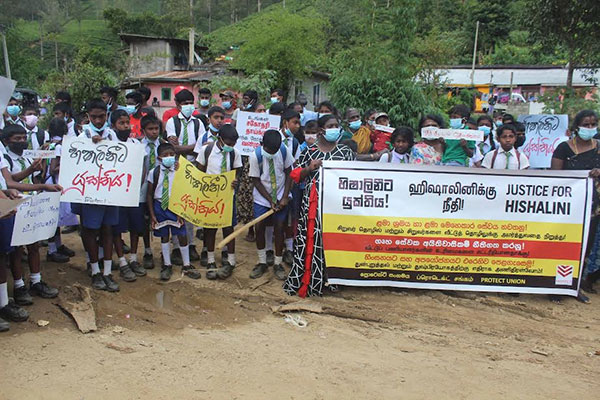 රිෂාඩ් බදුර්ධීන් මහතාගේ නිවසේ මෙහෙකාර සේවයේ යෙදි සිටියදි මරණයට පත්වු බාල වයස්කාර ඉෂාලීගේ මරණයට සධාරනයක් ඉටු කරන ලෙස ඉල්ලමින් ඩයගම වතුයායේදි නිහඩ විරෝධතාවයක් 10වන දින සවස සිදු කරන ලදි.